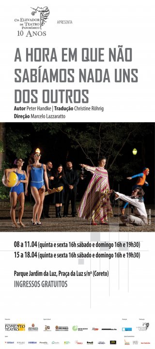 Dando início às comemorações de dez anos da Cia. Elevador de Teatro Panorâmico, o grupo dirigido por Marcelo Lazzaratto apresenta montagem do texto do dramaturgo austríaco em pleno Parque da Luz. Dezesseis atores interpretam 300 personagens que não falam absolutamente nada e reproduzem o cotidiano dos transeuntes de lugares públicos.
